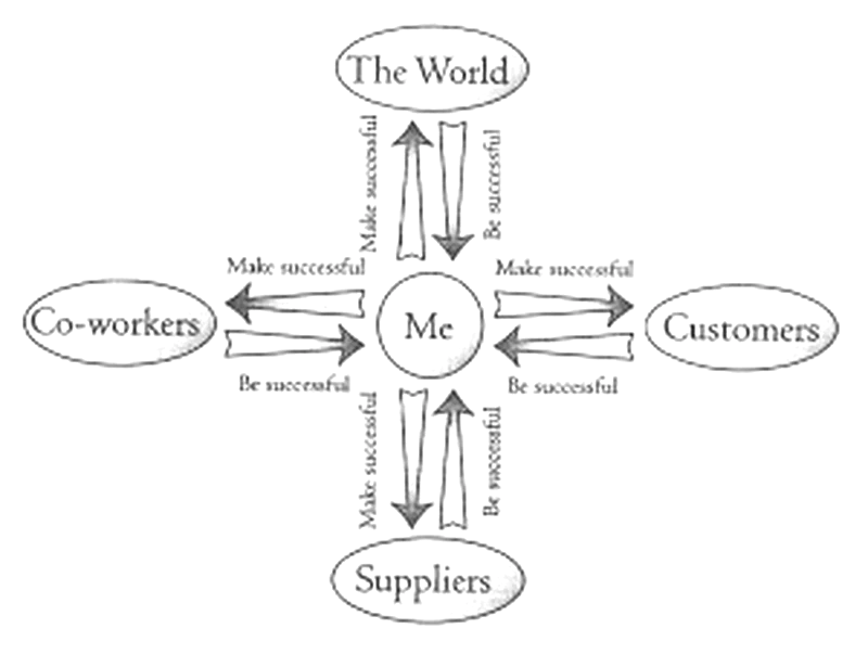 Si j’exclus les côtés mystiques mais rigolos, notamment les sagesses antiques qui ouvrent les chapitres : “Pas cela, ni cela non plus”, “la ligne qui nous sépare est artificielle”, “tes problèmes sont ta voie”, “aucune action n’est jamais perdue” ; ou les aspects mercantiles qui achèvent le livre (tel séminaire, tel livre, tel session, voire une hot-line karmic, etc.), j’y trouve des choses intéressantes. Notamment l’idée forte du Karmic Management qui veut que toutes les réussites que vous allez pouvoir promouvoir, générer, réaliser autour de vous augmenteront votre propre réussite.