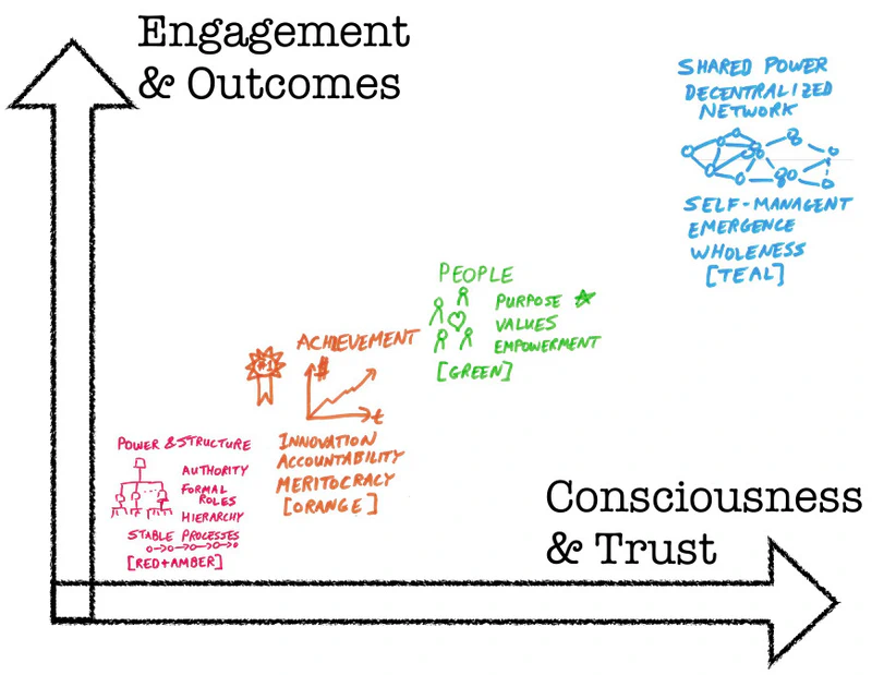 Pour cela je me suis basé sur la session avec Michael Sahota & Olaf Lewitz à laquelle j’ai assisté, elle même très inspirée par la Spirale dynamique de Clare Graves. En voici les slides. Après vous pouvez utiliser leur tableau pour placer votre organisation et la voire évoluer au fil des mois.